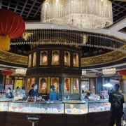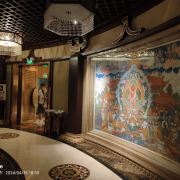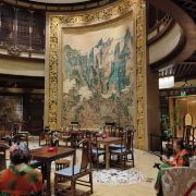 ⑦七层:茶禅舍,是一家宫廷茶舍,正中是山水彩绘,头顶的大型水晶吊灯很壮观,服务员身穿红绿汉服