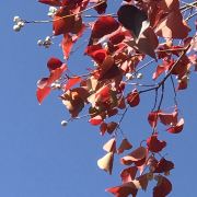 公园里满目秋色,枫叶红,杉林黄,在晴朗的蓝色天空下格外美丽耀眼。