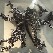 这些奇石中印象最深的是那块酷似肋排的“大猪肉”,还有一块用“五花肉”做的“东坡肉”,相似程度,几可乱真,非常难得。还有就是收藏家用奇石精心“烹制”了一大桌“满汉全席”,每个菜都要一盘几乎长得一样的奇石才能“炒菜”,真是特别不容易。还有一鸟巢鸟蛋的奇石也特别栩栩如生,连鸟巢中垫草都是一丝一丝的,特别清楚……