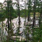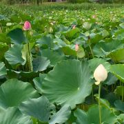 感觉公园的西半部是一个经过整修合并的农业生产园,东半部貌似农地鱼塘经过平整和修饰而来的大草坪和荷塘莲花塘,荷塘内有雕塑一般的大型鹤在翩翩起舞,莲花塘内有野生白鹭在觅食。