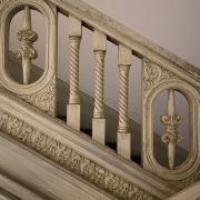 🐢安培洋行最广人知的是鲜艳的酒红色雕花楼梯空间精美夺目(图5),龟龟之前看的时候就在想红色虽然醒目,但可惜的是细节被覆盖了,不知道原本的样子,看到三楼、四楼的楼梯花纹、门框装饰细节才放下心来:“放着别动最好,修旧如旧还是不如不修啊!”