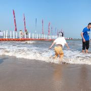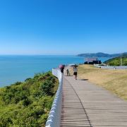 在这里玩玩沙滩、捉捉螃蟹️,捡捡贝壳,吃吃海鲜,都还蛮不错的,国庆期间景区还送了国旗,就是水没我想象中的干净,海边目前还可以游泳,另外还有很多游玩项目,还可以坐快艇、出海捕鱼等,山上还有观景台,不过栈道还在修,站在最高处俯瞰风景不错,是个度假休闲的好去处。