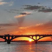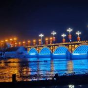 伊犁河大桥,是拍摄落日的极佳地点。每当黄昏时分,落日余晖洒在河面上,波光粼粼,与周边的雪山、草原相互映衬,形成了一幅如诗如画的美景。此外,在不同的季节和天气条件下,还可以欣赏到云海、雾凇等独特的天象景观。大桥上路灯顶端是如白玉兰花般盛开的灯头,呈线状分布在桥两边,宛如给大桥戴了个银白色的花环,非常美观。