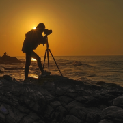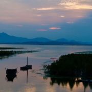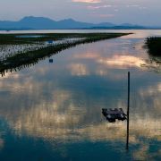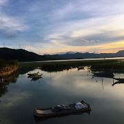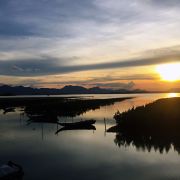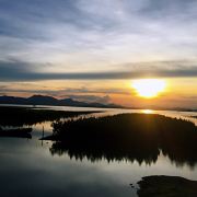 能看到许多白鹭!当夕阳晒满天空时,从观鸟台望去,
