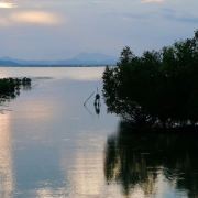 平静的海面倒映着红树林斑驳的光影。在神奇的生