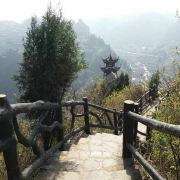 舞阳河东侧,有一座名为石屏山的险要,重岩叠峰,雄伟险峻,东西绵延2.2公里,主峰海拔668.1米。石崖绝壁高千仞,端直苍阔如屏风。我们可以从和祝圣桥附近攀登石屏山,在山上就可以俯瞰镇远全景,山顶之上,有一段长达2公里的府城垣。石屏山上主要有两个景点,一是四官殿、二是府城垣。