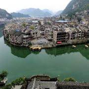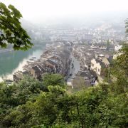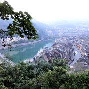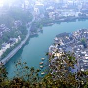 镇远古城,位于贵州省东部武陵山脉阳河畔。北岸为府城,南岸为卫城,阳河水以“S”形穿城而过,远观颇似太极图。为中国历史文化名城,文治武功相得益彰,自古为黔东重镇,素有“滇楚锁