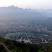 镇远府城垣位于石屏山山顶,石屏山上有观景台,可俯瞰镇远城,位置刚好和青龙洞互补。 从观景台继续向上爬到顶,就是石屏城垣遗址,三公里长的古城墙,逶迤起伏。没有修缮,真正的遗迹,给人无尽的沧桑感。