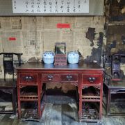 傅家大院,一座百年私人宅第,建于清光绪三十年(1904)。在两百多年前,傅家由弃官经商起步,傅姓货郎夹在匆匆人流中,从江西肩挑一副货郎担来到镇远定居下来,往来贩卖货物于洪江与镇远之间,经商养家。极具商家眼光的傅家老祖看到了桐油带来的商机,转行做起了桐油生意。多年艰辛创业,大码头边就有了享誉镇远的“裕盛老行”。傅家民居是座很典型的四合院,里面保存了许多古家具,古建筑,屋里一凳一桌皆有来历,古物到处都是,洗脸盆架、供、桌、床、瓷器、一转一瓦等等,都是付姓人家世世代代传承保护下来的,随便拿起一件都是付家的传家宝。付家大院也成为镇远古巷子古名居具代表性的院落。走古巷子,古名居,寻找“歪门邪道”,追溯两百多年前商家云集,西南商业大都会的踪迹,付家大院可谓是其中的佳名片,许多游客都慕名而来,走进古宅,坐在两百多年前的太师椅上,细细品味着那段辉煌的历史。