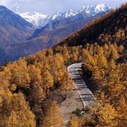 每年10月,俄初山的风景让每一位来访者都如痴如醉。当十月的初霜降临俄初山的山岭峰谷时,雪线以下的林涛松海正换上缤纷的秋之盛装。此时的俄初山恰似一位待嫁的新娘:头披圣洁的哈达,身着五彩的秋装。在俄初山顶远眺亚丁三座神山,景色十分壮观。