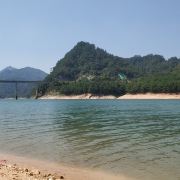 南水水库面积近40平方公里,是一座气势豪迈的人力工程。水库1958年破土动工,因地制宜呈南北走向的狭长形地貌,青山连绵,碧波万顷,除了本身发挥的职能作用,湖畔的原始自然景观同样丰富多彩,是游人信步散心、乘凉垂钓的好地方。