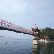第三站是梦园,是金榜题名的状元岛,上面有状元祠、状元桥。状元桥是一座铁索桥,长达约100米,分为两端,可以在上面荡来荡去,比较刺激。状元桥连接着心园,是和湖风舟在一起的付费项目,在一起20元每人。