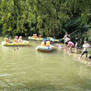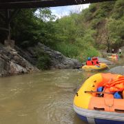 5分 超棒去年8月份去的,这个地方来了就要漂流,不然就白来了。第一次漂流,刺激,也没有那么危险,沿途危险的地方都有工作人员在护航。我们是网上买的套票,门票+漂流+保险(考虑漂流有一定的风险,每人买了10元保险,和同伴一起出来玩,不想有事了不愉快,花小钱免麻烦。)建议夏天热的时候来吧。来的时候备一套衣服,漂完全身里外湿透了,备的衣服多包几层塑料袋背身上,漂流完了直接就换上,山里的水真凉,漂完了穿着湿衣服真冷。返程建议走回去,可以看看沿途的风景,因为漂下来时拍不了多少照片,净玩水啦,不管认识不认识都互相滋水,,记得带水枪或大水瓢。带一双我下面图片里的鞋子,拖鞋怕漂丢了。在上游湖面上多玩一会儿水,到了漂流的弯道想停下来玩可就没机会喽。我们玩的挺高兴的,丫头漂完了问我能再漂一次吗。建议漂流的价钱能亲民一些就更好了。