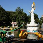 紫马岭公园位于中山市的中山五路南侧,公园林荫浩淼,池莲清凉,四季鸟语花香,于1993年国庆日正式落成开放。园区以原有自然风貌为基础,融入人力因地制宜,巧妙规划,从而营造出了一处供市民休憩和户外健身的大型生态化城市公园。紫马岭原为“香山八景”之一的“天池芰荷”旧址,一直以空气清新透澈、景色怡人而闻名,相传在明清两代时,这里还曾是富家子弟跑马游乐的场所,可见它实在是一块天赐中山的宜居之地。游人若有兴致,不妨登上园中的“揽胜阁”,俯瞰全园风景,如果天气晴好,中山全市风光也可尽收眼底。公园四个入口,北门连接市区的主干道,是主入口,园内共有20多个景点和一个大型鸟区(“嘤鸣谷”就在其内,紫马岭里的嘤鸣谷是中山仅有的动物园),罗列有序。进入北门,象征中山市建设腾飞的“紫马奔腾”园雕迎面耸立,70米长的喷水池碧波荡漾,与彩灯辉映;象征中山市改革开放的巨型不锈钢荷花球高竖池中,银光闪耀。信步园内,摩崖园传神诗书,满目琳琅;百花园百花齐放,四季飘香;名园树木名人手栽立下光辉榜样;品荔园满园“妃子笑”,岭南佳果名扬;野趣园山林景色;锦鲤池溢彩流光;春园桃花怒放;水园游艇繁忙;荷花天池滴水观音,普施甘露;秋冬随时移世易,红绿有常;玫瑰园幽香远送;清芬园异卉迎人;“嘤鸣谷”鸟语花香;烧烤场频传笑语;一片祥和喜气扬,登“揽胜阁”,俯瞰满园景色,尽揽全市风光。