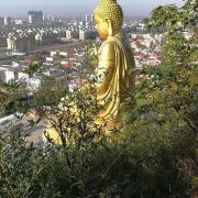 微信小程序大伊山是国家4A级景区,该山素有淮北平川“第一神山”之称。其属泰山支脉,诞生于太古代,其距今已有20亿年的历史,因商朝宰相伊尹在此隐居而得名。该山位于连云港市区以南30多公里处,由12座山峰组成,主峰伊祖峰海拔226.7米。该山的山体属于出露太古界、中元古界地层,非常古老,山上有许多奇石、奇洞,还有历史久远的石棺群、岩画,去爬山的主要是当地人,也有去千年古迹“探险”的户外团队。该山主要有南门和东门两个大门,南门因为离灌云快客站近,是坐汽车来的游客的主要登山处。南门外的石佛寺免费,寺庙始建于元朝,不过现在看到的是现代重建的。寺庙里引人注目的是大雄宝殿后面的露天金色坐佛,沿着台阶向上攀爬到坐佛脚下,抬头仰望,佛的基座高33米,佛身高33米,气势恢弘。石佛寺后有上该山的山道,其虽然海拔不高,但是山头很多,不停地上上下下爬小山头,也是会感到累的。爬山过程中可以注意下美女石、鳄鱼石、鹰嘴石、蛙石、狮身人面石等奇石。山上有个石佛古寺遗址,不过遗址上的新建筑不如山下的石佛寺那样金碧辉煌。爬到山顶后,凉风习习,可以俯看整个灌云县。该山上多深不可测的洞穴,全副武装的户外团队可以去探洞,普通游客也想要体会一把,可以去安全度较高的盘丝洞,间于石佛古寺遗址和山顶之间,记得探洞一定要带好手电筒。盘丝洞进入后步行一段时间会遇到丁字路口,无论往哪个方向走,钻出洞口后都是死路,看过风景后便可从之前的入口退出盘丝洞。大伊山石棺墓遗址是新石器时代的墓葬,开阔的平地上有一个个四方形的石棺遗迹。从该山的东门沿着伊山路往北步行可以到达大伊山石棺墓遗址,如果不认识路,就问问当地人,不过如今遗址的大门紧闭,若执意要看,也多问问当地人,他们可能会有办法带你去看。该山的美女石岩画、麋鹿石岩画、反映古人对天文认识的星相石等散落在景区各处。