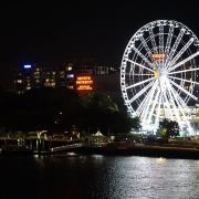 若是在晚上前来,可以在摩天轮上看到城市灯光照耀下的夜色,更加迷人。坐完摩天轮后,不妨在南岸公园里转转,有许多餐厅、小吃及娱乐消遣。