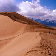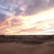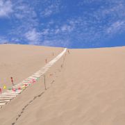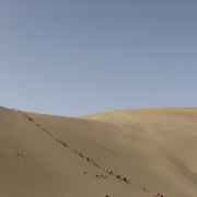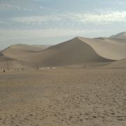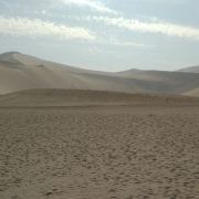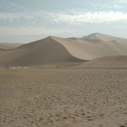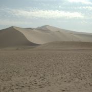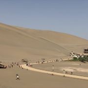 沙峰起伏,人们顺坡滑落,便会发出轰鸣声,称为"沙岭晴鸣",为敦煌八景之一。