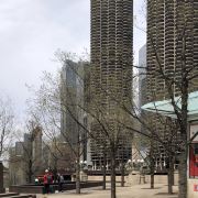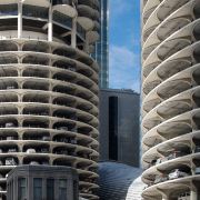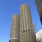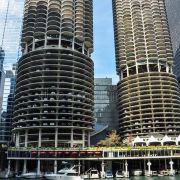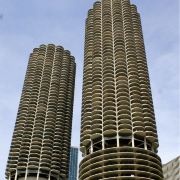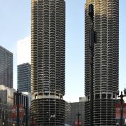 马里纳城是芝加哥的标志性建筑之一,两座60层高呈玉米外形的孪生楼,于1964年建成的,整个工程耗资3600万美元。工程完工时,这对孪生楼就成为了当时世界上较高的住宅楼以及较高的钢筋混凝土结构建筑。在这其中有诸如剧院、体育馆、游泳池、滑冰场、保龄球馆以及一些商店和饭店,整个建筑被视为“城市中的城市”。