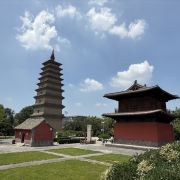 5分 超棒开元寺,位于河北省正定县常胜街西侧,原名净观寺,始建于东魏兴和二年(540),隋开皇十年(591)改名解慧寺,唐开元二十六年(738)奉诏改今名。开元寺钟楼为砖木结构的二层楼阁式建筑,平面呈正方形。面阔、进深各三间,建筑面积135平方米。单檐歇山顶,上布青瓦,通高14米。其大木结构、柱网、斗拱都展示了唐代建筑艺术风格。甚至上层木构件还有相当部分保持了唐代原貌。钟楼是一座两层楼阁,可以登上去,但台阶实在陡峭得很。在二楼可以看到屋顶的木结构和那口大钟。钟楼的屋檐四角也悬有风铃,和正定的其他几座寺庙一样,这里的风铃的铃舌也是四瓣心形的,非常漂亮,这是河北省现存年代最早的一座木结构钟楼,也是北方时代较早的一座。须弥塔又称雁塔,坐落于钟楼西侧。塔身建在高约1.5米的正方形砖砌台基上,塔平面为正方形,密檐九级,举高39.5米,塔身第一层较高,下部砌石陡板一周,各面两端均浮雕一尊雄劲有力的力士像。石腰线以上全部由青砖砌筑。正面辟石券门,门框刻以花瓶、花卉图案,门循浮雕二龙戏珠。2000年6月在正定城内府前街出土了一巨大赑屃(bìxì)残碑基座,长8.4米,宽3.2米,高2.6米,重107吨。赑屃为龙生九子之长,貌似龟,有齿,力大,好负重。因此其形象经常出现在石碑之下。安置在开元寺里的这座赑屃据说是国内最大的一只,鼻孔象猪,昂着脑袋,形象笨拙而可爱。景点位置:河北省石家庄正定县卫前路与开元路交叉口西北150米门票:20元。