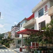 官湖村现已成为小众旅游名地,在其海滩的东面一角有冲凉房和一家海边餐厅,而在西面顶端的沙渔涌,有几家渔民经营的餐厅修建在海边的阁楼上,坐在这里吃吃饭、喝喝茶,别有一番滋味。
