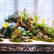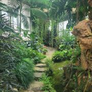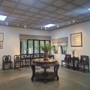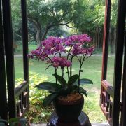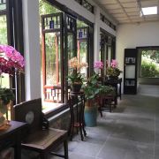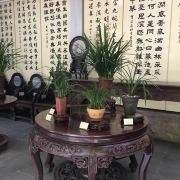 2、江南兰苑在岛中部偏西,需另买票,苑内是江南园林风格,精华是室内兰花展和盆景家居。兰苑旁边是樱花谷,在旺季时这里是景区精华,目前只是一片绿色。这一片包括“无锡人杰地灵苑”(步行道两旁有从古至今无锡的名人雕像)、“无锡人杰馆”(室内展览无锡名人,我到时已闭馆)、“赏樱楼”(仿古阁楼,花季时可鸟瞰樱花花海,是园区标志性建筑)。