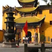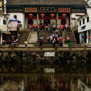 微信小程序化城寺位于池州市东南50公里处的佛教胜地九华山上,早在东晋隆安五年(公元401年)已有僧人在此筑庵,唐至德初年(公元756年)建寺,被认为是地藏菩萨转世的新罗国(韩国)王子金乔觉(金地藏)在此传经布道。化城寺是九华山的开山祖寺,历史悠久,同时也是地藏菩萨道场。化城寺在山上的食宿大本营九华街的中心位置,由九华街步行到达非常方便。寺庙两旁是一家挨着一家的小商铺,门前的月牙池据说是地藏的放生池,白墙黑瓦的寺庙和商铺倒映在池子里,能拍出漂亮的照片。月牙池附近有一娘娘塔,仅剩塔基,据说是为纪念金地藏的母亲而建。寺庙主体建筑沿中轴线排布,共四进,由南到北依次为灵官殿、天王殿、大雄宝殿、藏经楼,前三进为清代建筑,后一进为明朝建筑。漂亮的要属大雄宝殿,窗户上雕着花,门楣刻有冰纹,在恰到好处的位置鎏着金,进入大殿一定要抬头看屋顶,藻井上彩色的“九龙戏珠”雕饰为艺术珍品。作为九华山历史文物馆,化城寺的庭院回廊中挂着一幅幅展示九华山山水的字画,陈列着文物。值得一看的精品有:明代无瑕和尚用针刺破舌头,笔沾舌血写成的《华严血经》,无瑕和尚的肉身则在百岁宫可以看到;金地藏穿过的巨大的鞋子和帽子;明代青铜谛听,谛听是金地藏的坐骑;清康熙、乾隆帝的御书手迹等。