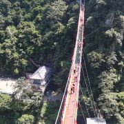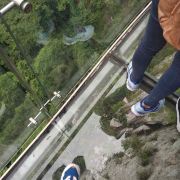 3分 不错景色确实不错,回归自然了。但是玻璃栈道确实有点坑啊,票贵不贵无所谓,起码得体验到一下刺激的感觉吧,因为前一天下过雨,景点就要求不用穿鞋套,导致玻璃上全是鞋子踏出来的脏兮兮的水迹,玻璃就完全不透明了,和走平底都差不多了,体验感实在糟透了。地下河很不错,里面乌漆嘛黑,头顶有树根和蝙蝠的尖叫,确实很让人害怕。其它的地方都很一般,漂流一点都不刺激,就是给幼儿园小孩子玩的。再说说交通,建议自驾游,坐公交车不是很方便,景点附近除了几家农家乐之外,没啥吃饭的地方,有葱饼2块钱一个,半天所有景点是可以玩一遍的,有的商家卖东西不断该价格,前一秒问店里的一个老板是5块,后一秒另外一个老板就说要6块!