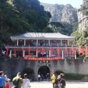 继续往上几百米,走到天门洞就是天门山了,附近的观音洞可以求签祈福,山顶有小卖部可补给些水和小食。休息一会儿后,可游览周边的天然石龙、天门峡谷、神仙下棋等景点,而后开始下山。半山处的地下河是天然形成的大隧洞,里面千姿百态的石乳有的像观音,有的像弥勒,出神入化。继续往下大约1公里,万石飞瀑是压轴,水流从洞中冲泻而下,下面的听音潭深达10米,游人可走到水边的栈道上近观。
