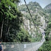永泰天门山生态旅游风景区距离永泰县城不远,大约只用半小时车程。山中的丹霞地貌和流水构成了众多造型奇险的瀑布,古树夏天的漂流也是深受游人亲睐的活动。