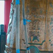 斧头担主景“蜜月阁”,阁高四层,内有洪钟,顶有龙凤宝塔,栋宇巍峨,轩昂英丽,并刻有“蜜月阁”碑记一座,又造三小亭曰“观日”、“观月”、“观海”。蜜月阁顶层的中心悬挂着一口巨大的“一见钟情”钟,挥石击之,钟声悠悠,回荡在蓝天碧海之中。