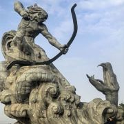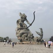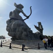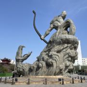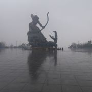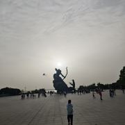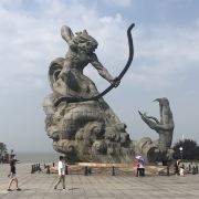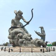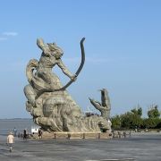 5分 超棒去参观岳阳楼,先到巴陵广场。巴陵广场位于岳阳市中心城区主干道巴陵路的西端,西临洞庭湖,北侧就是岳阳美食街汴河街和岳阳楼公园,是去岳阳楼的必经之地,也是岳阳热闹的场所。这个面积4万多平方米的广场明显的标志就是那座高达16米的“后羿射巴蛇”雕塑,取自山海经巴蛇食象的故事,相传后羿曾斩巴蛇于洞庭湖,积骨成丘陵乃有岳阳,用神话传说诠释了岳阳这座城市“巴陵”称呼的来源,也体现着“羿射巴蛇,万民乃安”的意思。整个广场气势恢宏,中央广场周边为疏林草地,广场基本对称,突出东西向的城市历史发展轴,站在滨湖景观区的台阶上可欣赏到洞庭湖美景。平台直通水面,大气壮观。沿湖用岩石连城围栏,上面刻写着许多文人墨客留下的诗句,耐人寻味。广场边还有瞻岳门、博物馆等城楼,可将广场、洞庭湖景色一览无余
