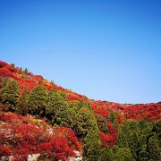 深秋时节,黄栌红叶遍布山谷,如火似霞,丛栌间柏,泼红嵌黛,丹青丽雅,美不胜收。不仅让人赞叹“泼染山红景色好,不是香山胜香山”。