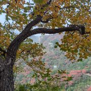 石门坊景区森林覆盖率99.6%,由于气候和地理原因,红叶黄栌成为当地的主要树种。