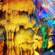黄龙岩畲族风情旅游区位于广东省河源市东源县漳溪畲族乡,是一个领略民族风情、观赏溶洞美景的佳去处。畲族人自称为“山哈”,是广东所有民族中接近自然的民族之一,漳溪畲族乡是广东省的一个畲族乡,畲族人口近6000人均为蓝姓,是“广东畲族中心”,这里的畲族人民淳朴善良,畲族风情独特自然,每年农历四月初九的“招兵节”是当地畲族为盛大的节日。畲族歌舞表演和畲族生产生活文化展将给您一种零距离体验少数民族风情的机会。漳溪乡蓝姓畲族的发祥地之一的黄龙岩是一个喀斯特溶洞,直入深达60米,实属国内溶洞之罕见,洞内面积3900多平方米,以“深、幽、奇、险”著称,洞内石钟乳基本上没有受到破坏各式石钟乳形似瑞狮迎宾、群猴候桃、无底酒壶、水帘仙洞、天宫胜景等,在灯光的照饰下,五彩缤纷,具有极高的观赏性。