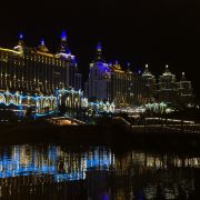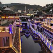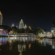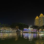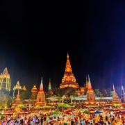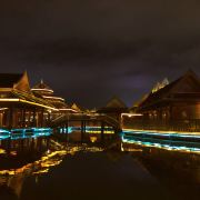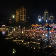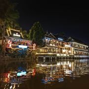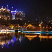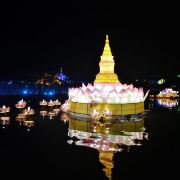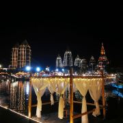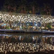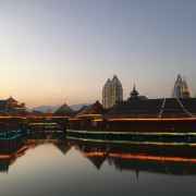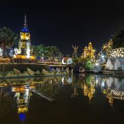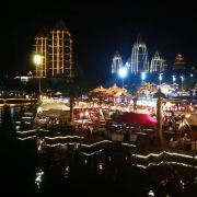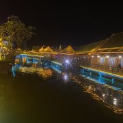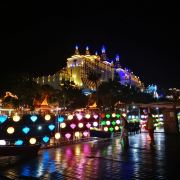 位于大金塔的东南面,在这里可以买到中国、泰国、缅甸、老挝、柬埔寨、越南这六个国家的特色商品,也可以品尝到各国美食,比如种类齐全的热带水果。湄公河·六国水上市场里还有不少酒吧,可以选择坐在靠窗的座位,点上一杯小酒,看着夜色与湖面交响辉映,多么惬意。