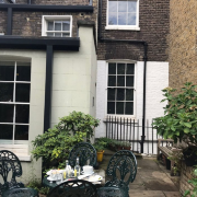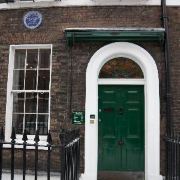 狄更斯故居博物馆所在的Doughty Street是一条非常普通的街,不留神的话容易错过。根据路标走可以找到狄更斯故居博物馆,这栋房子和传统的英国住宅看起来没什么两样,只是门口贴着蓝底白字的圆形标牌,写着“查尔斯•狄更斯,小说家,曾居住于此”。小小的正门经常是关闭的,按一下门铃便有工作人员开门让你进去参观。