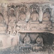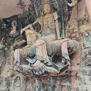 从成都出发,2.5小时路程(成都和重庆之间)。因石窟大多为独具特色的“单元式”布局,较为分散,而我们只有1天的时间,只能走马观花游览了三个代表石窟:圆觉洞、毗卢洞、华严洞。本来想去茗山寺(带风化年轮的超美石窟),走错路去了华严洞,还好也没有让我们失望,华严洞是安岳石窟中规模最大、保存最完好的石窟之一,开凿于宋朝年间,洞内佛教人物造像栩栩如生,雕工精细,线条流畅,展现出中国自然写实风格。