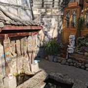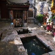 三眼井位于丽江古城内七一街上,是古城的一大显著特色。三眼井是纳西先民们用水的一种方式,第一口井为泉水源头,清冽洁净,是居民们平时的饮用水;水从第一口井溢出后流入第二口井,第二口水质洁净,用来洗菜和洗涮炊具;水从第二口溢出后流入第三口,第三口井为漂洗衣物专用,然后水从第三口排入排水沟中。这种特别的制井方式体现了纳西族人古老的节水环保观念,值得参观一下。