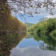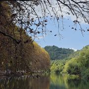 花溪黄金大道位于花溪公园西侧往花溪水库的方向上,沿着花溪河往西走到平桥,河两岸开始出现清丽的风光。继续沿河往西走,不久就可以看见那些高大的法国梧桐了。11月来此赏秋摄影,看河中倒影着的金色和黄色,景色如同仙境,令人心旷神怡。
