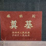 山门由两根高7.35米、直径1.2米和两根高6.35米、直径1.1米的浮雕九龙华安玉石柱组成,山门楣额“威镇阁”3个大字铁划银钩,笔力遒劲,是著名书法家启功的力作。山门左右各置一只由重达28吨的整块九龙璧雕琢成的石狮,工艺精湛,维妙维肖。