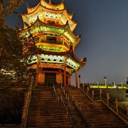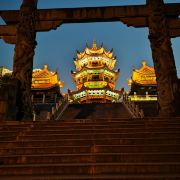 现在的威镇阁,依旧为3层建制,八卦形建筑,但规模远超历代。主楼高近52米,高大典雅而不失潇洒,气势非凡,意蕴深长。