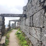 团山石约高8米以上成不规则圆体。山顶依托团山石而建一寺庙,全寺由石头构成,石头砖,石头墙,石头瓦,石头屋顶,构成一个全石质建筑。石屋里面据说冬暖夏凉,有石神位和石碑,在某些石头上可见当年捐赠扶修寺庙的人名。