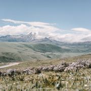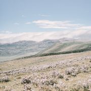 这个季节的高原还是一片绿油油的色彩,加上繁星点点般的野花,也是格外清新,远处还能看见延绵的不知名的雪山,意境十足。