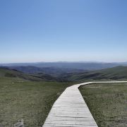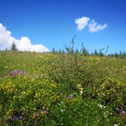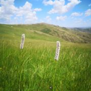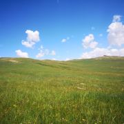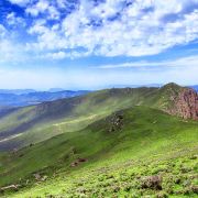 春坤山拥有内蒙古自治区西部最大的高山草甸草原,被誉为“云中草原”。登顶红芪峰后可以一览众山小,感受大自然的壮丽景色。景区内有自然山水的风格和奇特的造型地貌,每一道山梁都分为阴阳两面,向阳的山梁上怪石嶙峋、悬崖陡壁,阴面的山坡上土地肥沃、草木茂盛。