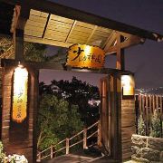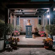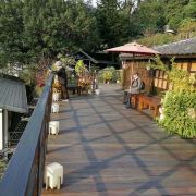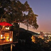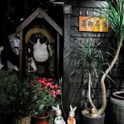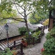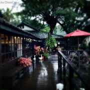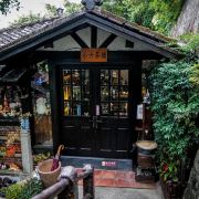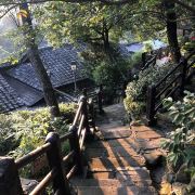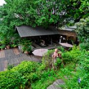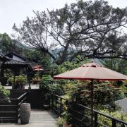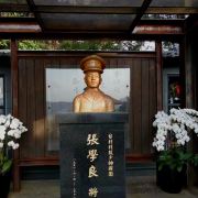 如果你想寻觅少帅昔日踪影,不妨到禅园里的餐厅看看。这间餐厅由当年主卧改建而成,墙上挂有张学良与赵四小姐1947年在台湾居所时的合影,两旁是于右任的题字:养天地正气、法古今完人。餐厅外的“历史走廊”上,悬挂着多幅张学良的黑白老照片,无声地讲述少帅当年在台湾养兰花、迷京戏、打麻将的幽禁生活。另外,餐厅还有一座茶艺馆,露天的咖啡座可以俯瞰整个北投的景观,视野很开阔。