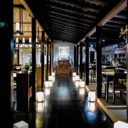 禅园建筑虽然是原样修复,内部陈设已是面目全非,昔日的主卧室、客房、书房、更衣室已改为餐厅—“汉卿厅”。餐厅的风格为中、日、西三者合璧,既有中式红木雕花桌椅,也有日式蹋蹋米,还有西式餐桌。
