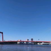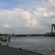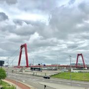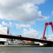 威廉姆斯大桥横跨马斯河,因通体红色,又称“红桥”,和下游淡蓝色的伊拉斯谟桥相互呼应。