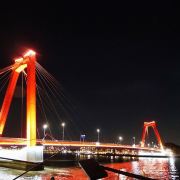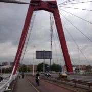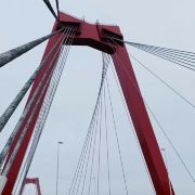 大桥建成于1981年,全长318米,采用了斜拉式的结构,由当时城市建筑师Veerling负责设计建造,以荷兰国王威廉姆斯三世的名字命名。涂着鲜亮红色的桥身在马斯河上非常显眼美丽。