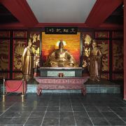 武侯祠旁边是曹氏家族4个孤堆,4个大坟冢,没有墓碑,也没有标识是谁,游客在土堆上乱爬,比包公家的族坟的待遇差远了。曹操本人的墓据说在安阳,但有争议,因生前树敌太多,搞了好多疑冢。