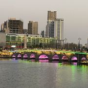 4分 满意这个桥在荆州城的东大门口,夜晚灯光打开以后看起来非常不错,很好看!加上护城河水的倒映显得更加美丽了。所以要夜晚的时候去看这个桥。